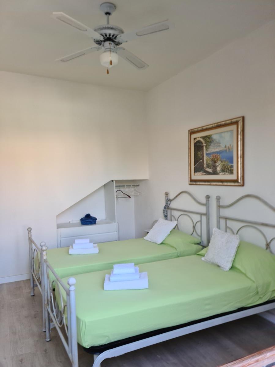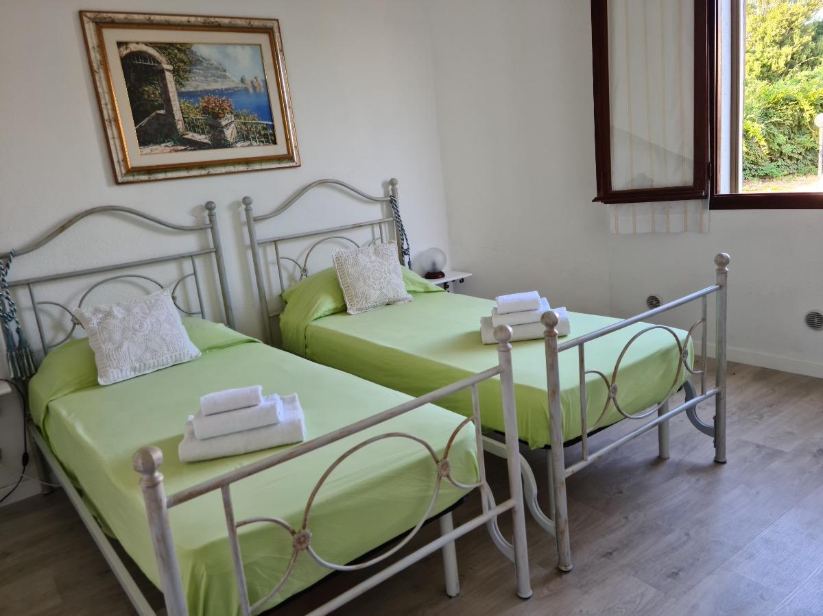 La casa dispone di quattro spaziose camere da letto, tre al piano superiore e una al piano terra, tutte dotate di aria condizionata silenziosa e zanzariere. Una delle camere al piano superiore vanta un bagno privato e un piccolo terrazzo, mentre quella al piano terra è arredata con due letti singoli. I quattro bagni, due per piano, sono completi di doccia e bidet.